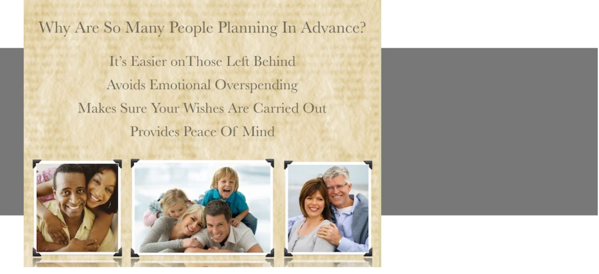 In a survey by the Wirthlin Research Group, 8 out of 10 Americans agreed that planning ahead is the smartest way to go about dealing with death. We can only assume that those who did not believe planning ahead to be the best option have never had the unfortunate experience of being responsible for making arrangements at the time a loved one has died.