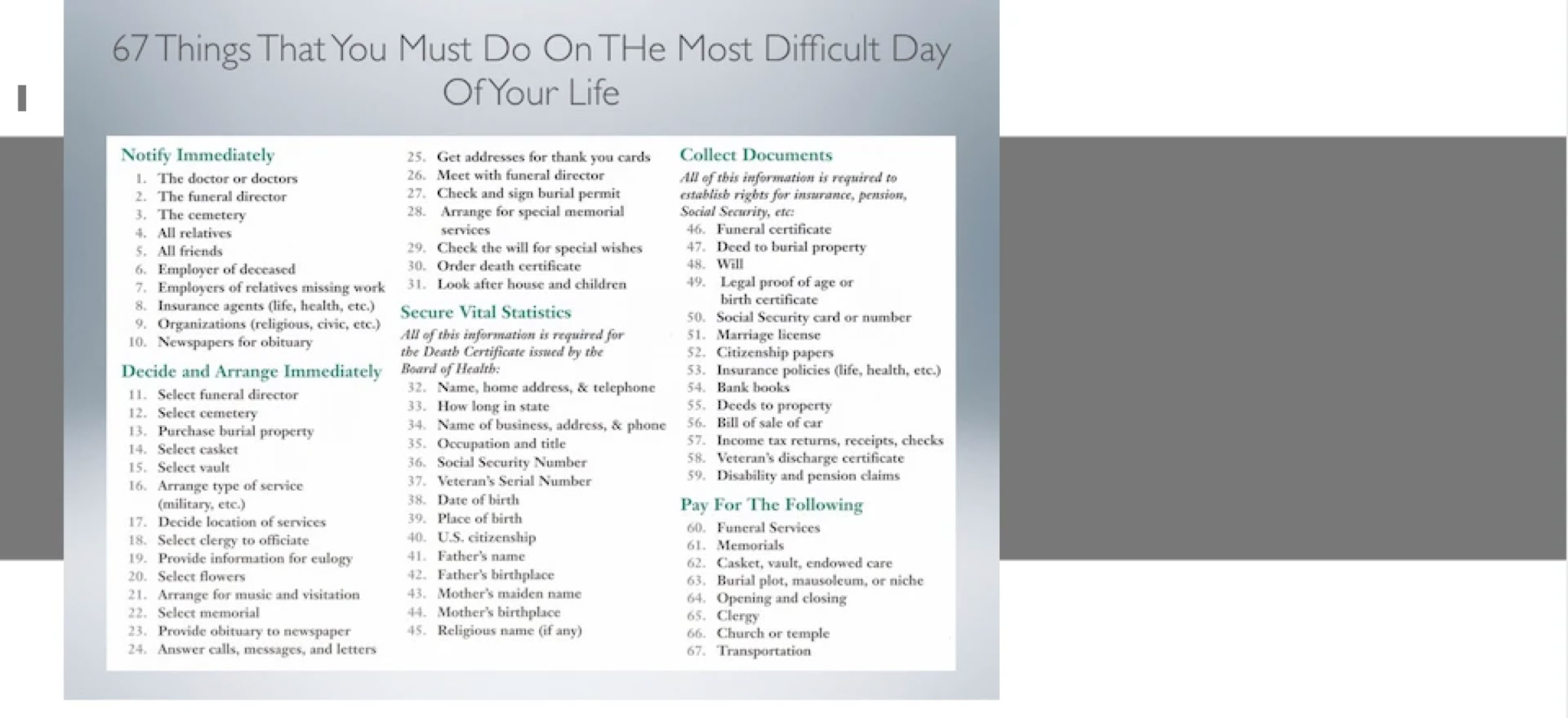 In a survey by the Wirthlin Research Group, 8 out of 10 Americans agreed that planning ahead is the smartest way to go about dealing with death. We can only assume that those who did not believe planning ahead to be the best option have never had the unfortunate experience of being responsible for making arrangements at the time a loved one has died.