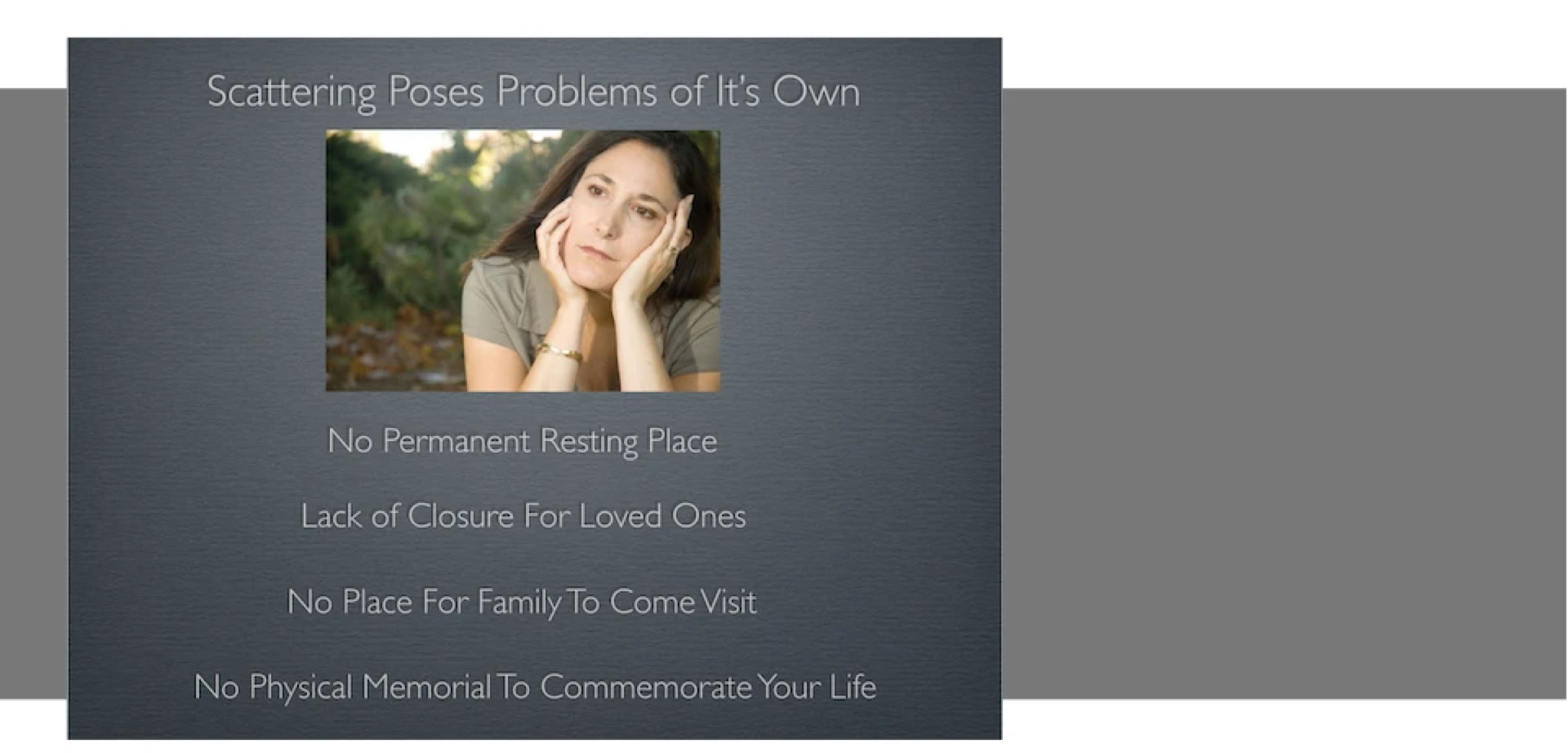 -There is a lack of closure and the emotional distress that comes from looking at his/her ashes over and over every day. How can somebody expect to heal that way?